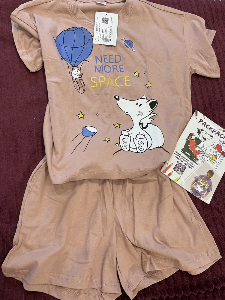 Шорты соответствует размеру,а футболка очень большая,на 50 р.взрослого человека